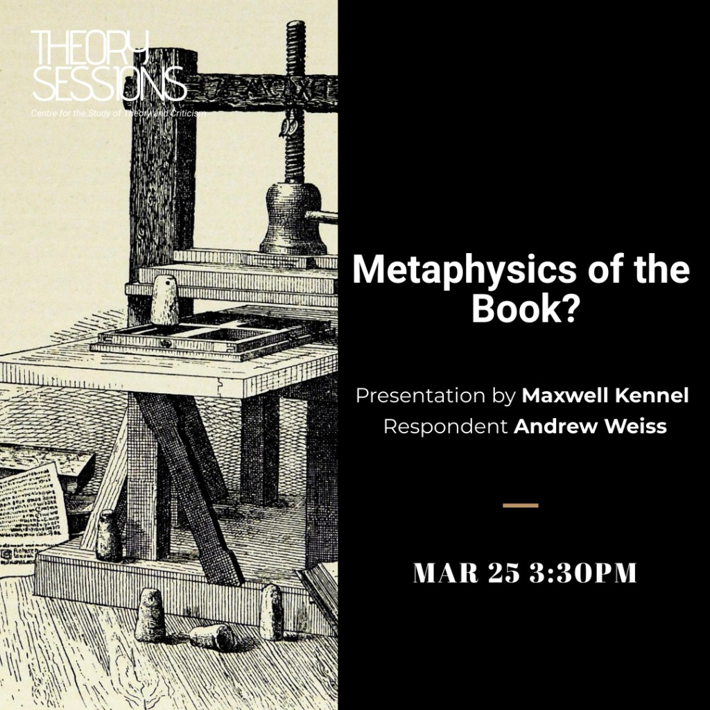 Since the advent of Gutenberg’s printing press in the sixteenth century, the medium of the book has mediated and transformed public spheres and private lives up to the present. During the last century, however, continental philosophers have not only read and written many books, but they have also used “the Book” as a figure for something much more than bound pages and movable type. This presentation loosely follows the journey that “the Book” has taken in recent continental philosophy, not as a mere physical object, but as a metaphysical image for the relationship between human beings and the world. This presentation draws from Lucien Febvre’s The Coming of the Book, Edmond Jabès’ Book of Margins, Jacques Derrida’s “End of the Book,” Gilles Deleuze and Félix Guattari’s ‘ontology of the book’ in On the Line, Jean-Francois Lyotard’s figural book, Maurice Blanchot’s The Book to Come, and more, all in order to both challenge and further the age old notion that the world is, and always has been, a book.