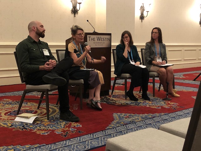 I was fortunate enough to attend the International Congress on Academic Medicine conference in Quebec City in April, as well as two health conferences here in Thunder Bay – each of which have helped me enter a new conversation on medical education at the Arcand Centre and NOSM University. Late in the year I presented twice at the American Academy of Religion meetings in San Antonio, Texas – first on a panel on Miriam Toews’ Women Talking (pictured below), and second in the bioethics unit, on Social Accountability – the main theme of my work at the Arcand Centre.